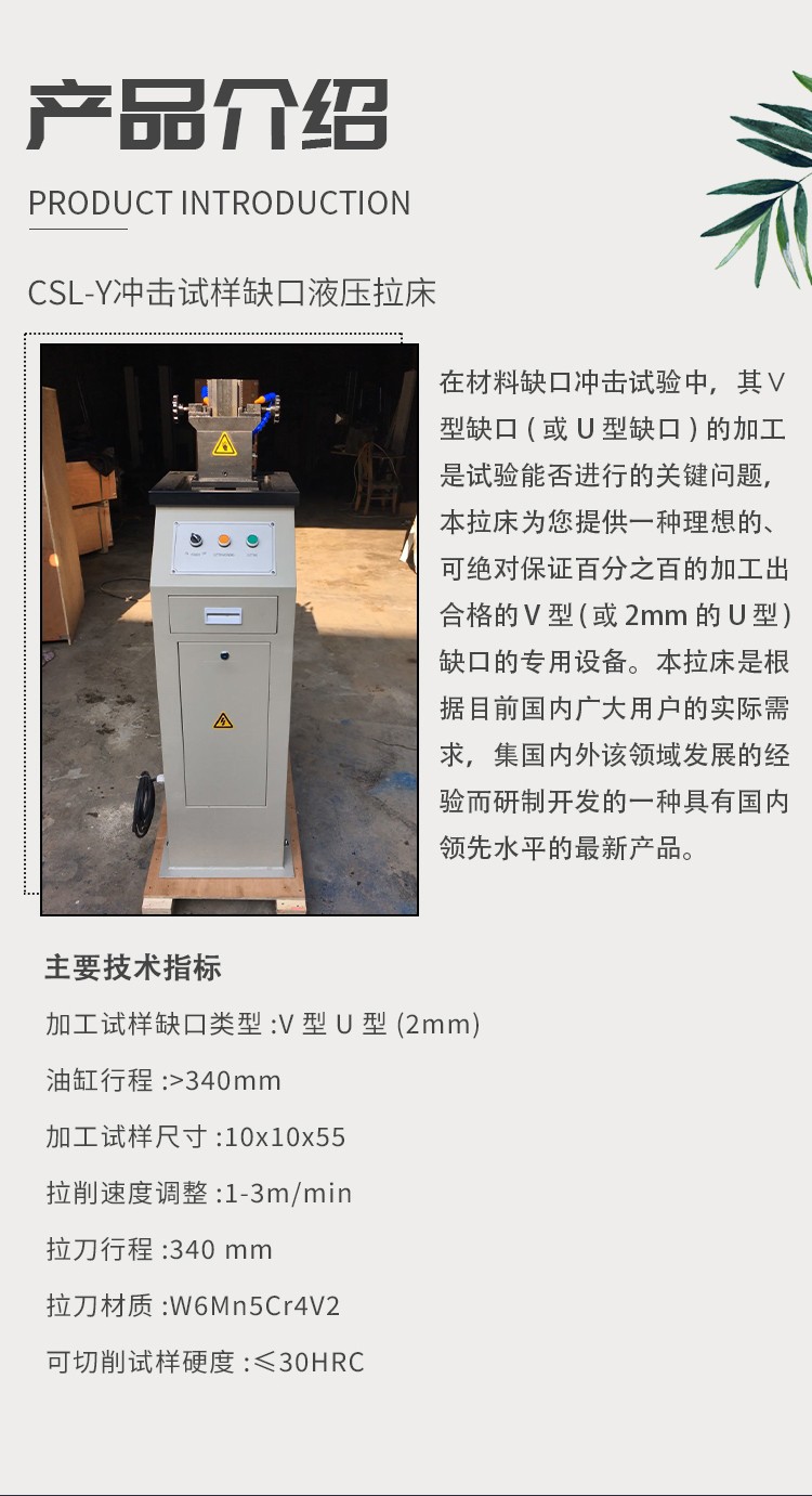 沖擊試樣液壓缺口拉床 金屬材料手動電動液壓拉床U型V型制樣機(jī)
