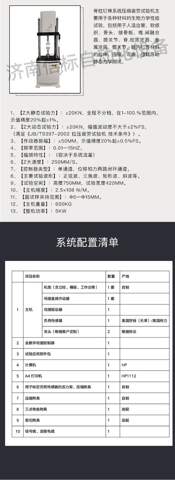 脊柱內(nèi)固定系統(tǒng)組件疲勞耐久試驗(yàn)機(jī)功能特點(diǎn)