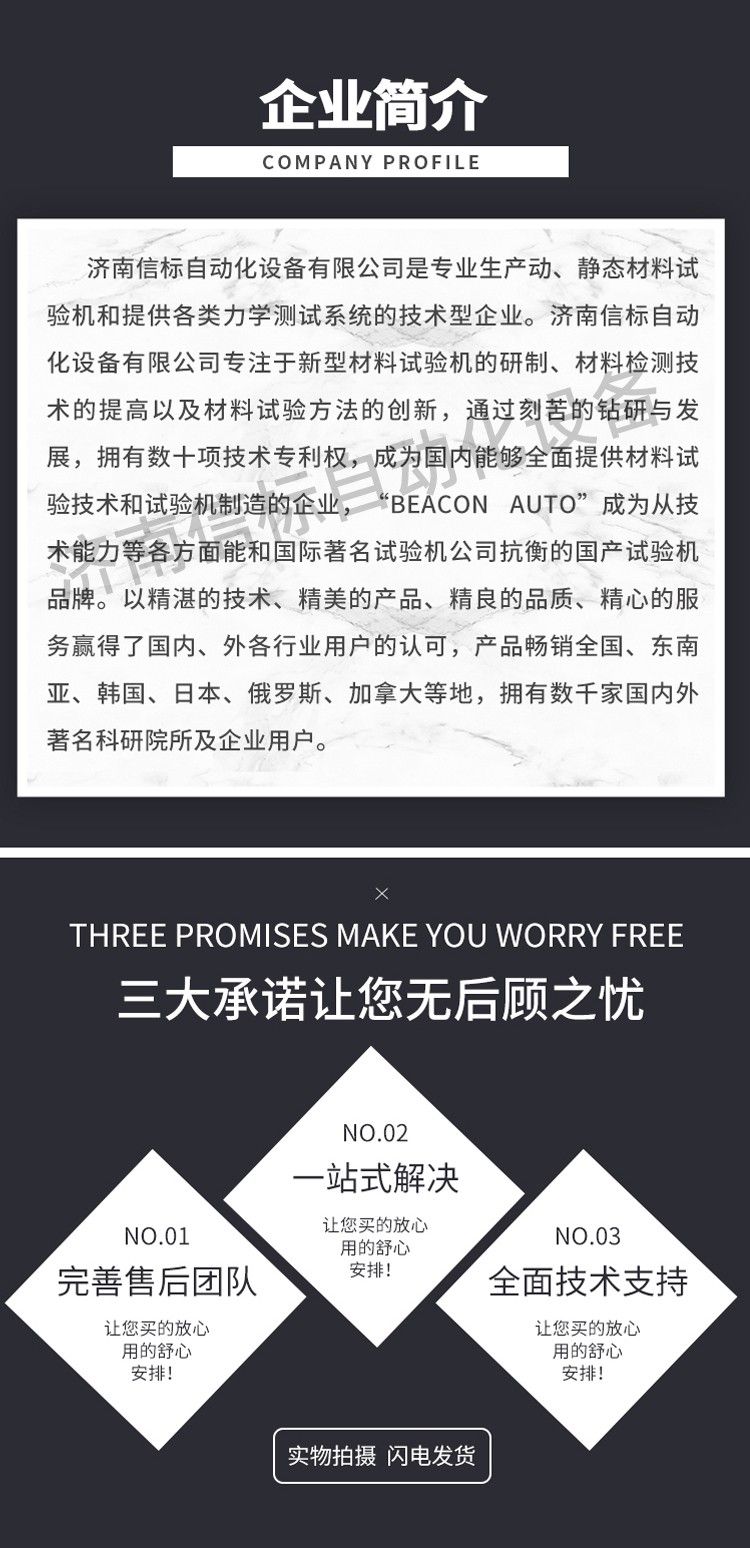 濟南信標自動化設備有限公司主要生產:動靜態萬能疲勞試驗機,接骨板彎曲試驗機,縫合線拉伸疲勞試驗機,髖膝關節磨損試驗機,電子萬能試驗機、液壓萬能試驗機、巖石三軸、四軸,電液拉力試驗機,材料試驗機,高低溫蠕變,高低頻疲勞,拉伸、扭轉、杯突等二十多個系列兩千多個的品種。