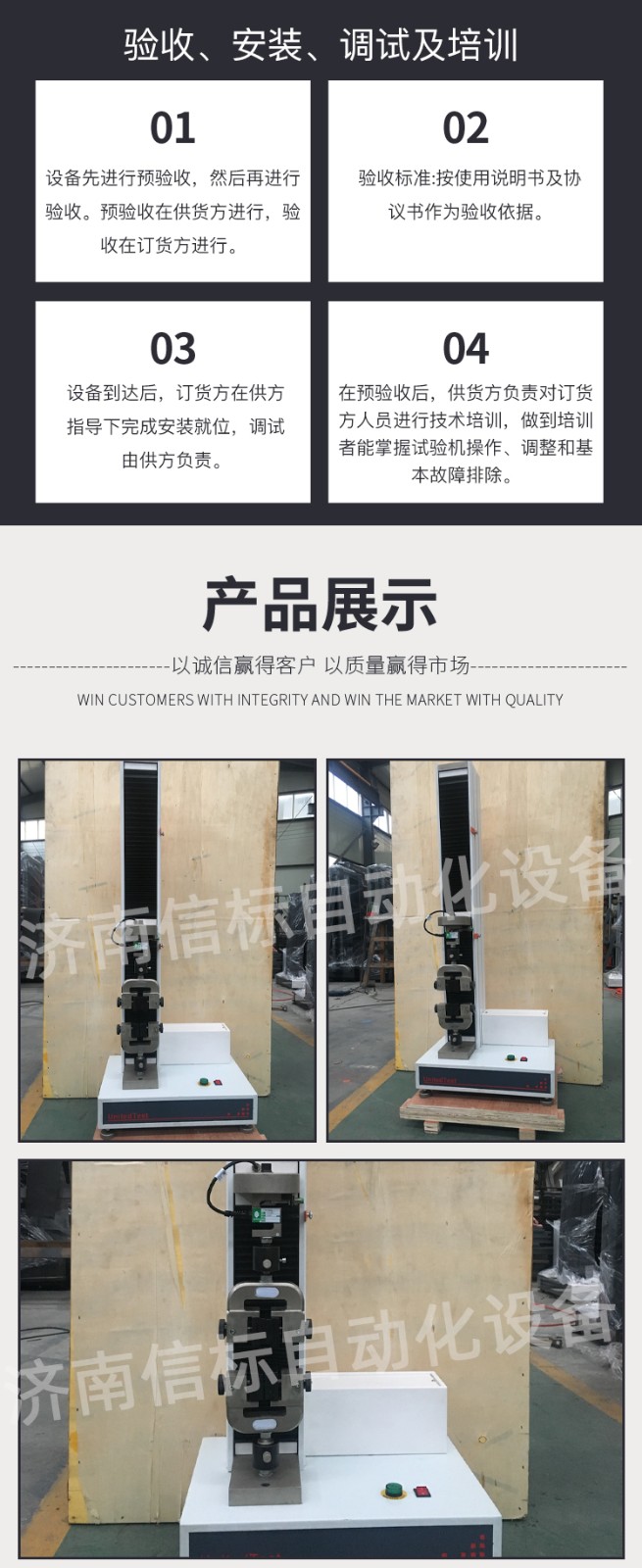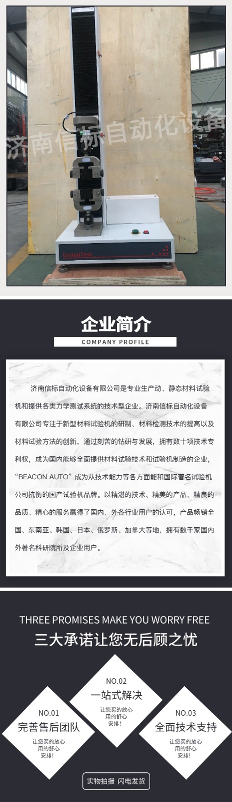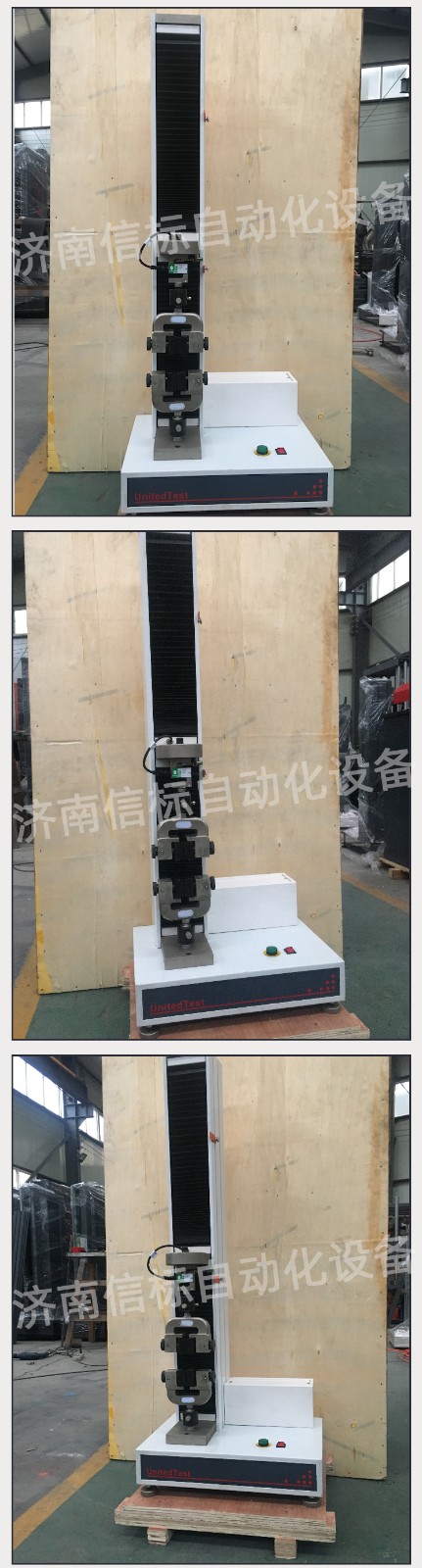金屬材料壓縮彎曲實驗口罩塑料拉伸強度試驗機主要功能及特點: 1、主機: 1.1調速系統采用伺服電機和自主研發減速系統,性能穩定可靠,具有過流、過壓、過載等保護裝置。調速范圍可達0.05~500mm/min。 1.2傳動部分采用圓弧同步齒形帶,精密絲杠副傳動,傳動平穩,噪音低,傳動效率高。 1.3萬向節采用十字插銷結構,而且具有擺角限制功能,一方面便于試樣夾持,保證試驗同心度,另一方面很好的消除了不規則試樣對傳感器的影響。 2、控制系統、操作軟件及數據處理系統 2.1計算機控制系統,具有集成度高、性能穩定、調整方便等優點。可以對實驗數據進行實時采集,對實驗特性曲線實現實時動態顯示,試驗數據文件能以Access常用數據庫或SQLserve大型數據庫的方式保存,方便實現客戶的資源共享及網絡管理,以及用戶的再分析。對于用戶自定義的各種word2000報表,該軟件可輕松實現訪問,解決了不同用戶或同一用戶在不同時期對試驗報表有不同需要的難題。該軟件可處理試驗力、位移、時間、變形的原始數據及由此派生的曲線。