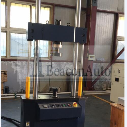 金屬線索疲勞機械性能試驗機 產品特點: 1.主機:(輔助實驗夾具以客戶要求為準) 金屬線索疲勞機械性能試驗機主機為雙立柱框架式結構, 伺服直線作動器下置于主機框架上部。夾頭分別安裝在橫梁和作動器活塞桿頂端。主機橫梁調整采用電動絲杠升降,傳動單元隱藏在橫梁內部,外觀整潔,主機下部工作臺為分體式,不需要刻意拆掉,整機防止在客戶Z定的臺面上。手動夾緊、彈性松開式結構,保證試驗過程中橫梁穩固可靠,同時保證在非試驗狀態時橫梁保持鎖止不動。立柱外表面采用電鍍硬鉻處理,可有效增加立柱抗磨損能力,提高防腐蝕能力,同時增加主機外形的美觀程度。 試驗機主機具有結構緊湊、橫梁升降自如、機架剛度高、試件夾持可靠、對中性好、裝夾方便等特點,并可配備各種夾具和環境試驗裝置以擴展試驗功能。 2、作動器: 2.1伺服直線作動器是試驗機的核心部件,試驗機通過作動器輸出試驗力。采用自有技術自行設計制造,作動器內置在主機上部,由作動器主體、伺服電機,伺服驅動器和傳感器組成。 2.2、伺服直線作動器振幅極限位置設計緩沖區,避免運行失控產生損傷。 2.3、伺服直線作動器位移傳感器內置于活塞桿內采用美國Schaevitz公司LVDT位移傳感器,運動靈活不受外來干擾,活塞桿采用超精加工,表面鍍絡拋光達Rα0.4u。 2.4、負荷傳感器與夾頭接螺桿處、推桿桿與夾頭處設計有專用消除間隙裝置,進一步提高動態響應性能。