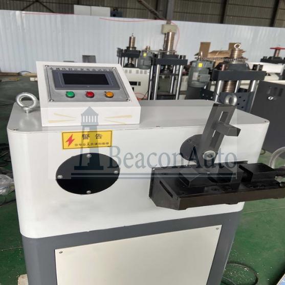 裸電線反復彎折耐用測試機 產品用途: 裸電線反復彎折耐用測試機主要用于金屬線材的反復彎曲試驗,以檢驗金屬線材在反復彎曲中承受塑性變形的性能及顯示出的缺陷。配備板材夾持裝置后,也可以對板材試樣進行彎曲試驗。 電動金屬線材反復彎曲試驗機設備特點: 本設備采用人機界面與PLC 控制,TFT 真彩屏顯示測試參數和試驗數據,光纜在擺錘上的位置可調, 配置不同的砝碼及不同彎曲半徑的彎曲輪,能滿足接入網用蝶形引入光纜和其他光纜的反復彎曲試驗機,速度 無機調速,造型美觀、性能穩定、操作簡單、使用安全。