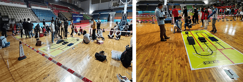 在智能終端配送機器人比賽現場,參賽隊員將機器人調試后進行比賽,隨著裁判宣布“比賽開始”后,參賽隊員拿起任務碼對應機器人掃描區(qū),機器人掃描二維碼獲取收貨點信息,掃描成功,機器人對應倉門打開,裝入物料后,關上倉門,機器人前往任務要求地收貨點。配送過程中機器人自主規(guī)劃路徑、自動識別交通燈、障礙等,在規(guī)定時間內,實現物料的自主運輸和正確投寄。