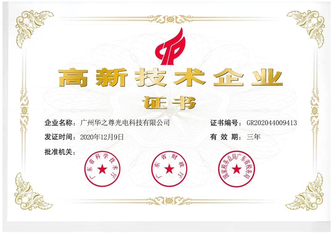 高新技術(shù)企業(yè)認(rèn)定的評選條件十分嚴(yán)格。入選企業(yè)必須從事國家重點支持的戰(zhàn)略新興產(chǎn)業(yè),并在核心技術(shù)必須擁有自主知識產(chǎn)權(quán)、產(chǎn)品或服務(wù)屬于高新技術(shù)領(lǐng)域范圍、科技成果轉(zhuǎn)業(yè)能力、研發(fā)投入、科技人才占比、成長指標(biāo)等方面達到相關(guān)標(biāo)準(zhǔn)。本次我司榮獲高新技術(shù)企業(yè)稱號,是對華之尊激光自成立以后發(fā)展成績的支持和肯定,也是客戶和社會各界人士對 廣州華之尊光電科技有限公司的關(guān)心和支持。