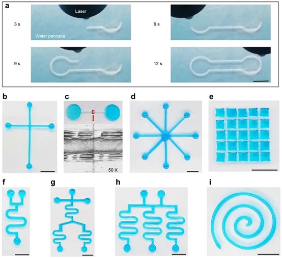 激光切水技術(shù)可以切割各種品類的微流控芯片,比如:十字交叉通道、分散型通道、陣列型通道、彎曲通道、集成型通道、螺旋通道等等,切割精度為350微米,證實了“激光切水”加工復(fù)雜微流控結(jié)構(gòu)的能力。