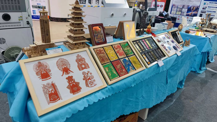 華之尊激光此次展出了多軸激光焊接/清洗機(jī)、激光打標(biāo)機(jī)、激光雕切一體機(jī)等多個(gè)領(lǐng)域激光設(shè)備,這些設(shè)備廣泛應(yīng)用于所有藝術(shù)設(shè)計(jì)類(lèi)專(zhuān)業(yè),如:建筑裝飾、工藝美術(shù)、服裝服飾、陶瓷藝術(shù)、產(chǎn)品設(shè)計(jì)、平面視覺(jué)等各類(lèi)專(zhuān)業(yè)。以下是華之尊激光在展會(huì)上的一些創(chuàng)新展示: